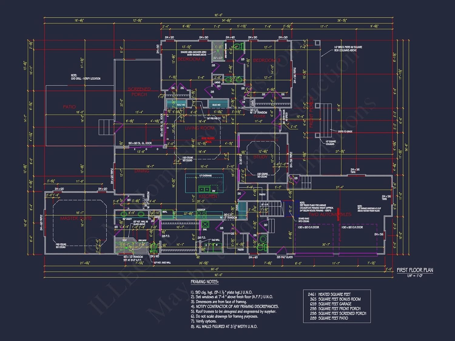 Width: 56′-8″Depth: 92′-0″Htd SF: 2,826Unhtd SF: 1,487Modern Home Plan with CAD Blueprints & Detailed Floor DesignsExplore this modern house design featuring CAD blueprints, 1.5 stories, 4 bedrooms, 3.5 bathrooms, and 2,826 heated sq. ft.—ideal for families and professionals.This modern Craftsman-style house plan offers a perfect mix of comfort and functionality. Designed for modern living, it delivers timeless curb appeal and smart space planning.Key Features of the Home PlanLiving Areas - Heated & UnheatedHeated area: 2,826 sq. ft. across 1.5 stories.Unheated extras: Screened porch, front porch, and patio for extended living.Bedrooms & Bathrooms4 spacious bedrooms, including a first-floor Owner Suite with walk-in closet and luxurious bath.3.5 bathrooms offering privacy and convenience for the entire family.Interior HighlightsVaulted ceilings create volume and natural light throughout the main areas.Open floor plan seamlessly connects the kitchen, dining, and living areas. View open layouts.Kitchen island and walk-in pantry add both style and practicality.Bonus room upstairs provides flexibility for a home office, media room, or guest suite.Garage & Storage DetailsGarage Bays: 2-car garage included.Garage Type: Attached for everyday convenience.Storage: Walk-in pantry, mudroom area, and bonus room storage options.Outdoor Living FeaturesCovered front porch and rear patio—ideal for relaxing or entertaining guests.Screened porch lets you enjoy the outdoors while staying shaded and insect-free.Stone and shake exterior offer Craftsman elegance and durability.Architectural Style: Modern CraftsmanThis design blends timeless materials like stone, shake, and siding with thoughtful modern details—perfect for families who want architectural charm and efficiency. Learn more about the Modern Craftsman style or explore its history on ArchDaily.Bonus FeaturesBonus room ideal for