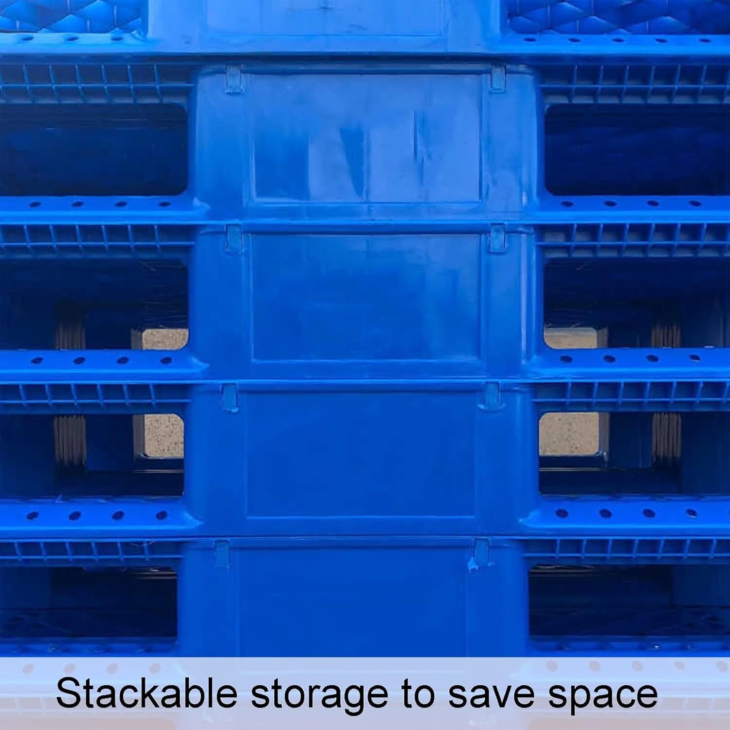 Looking for a durable, stylish portable pallet?Then take a look at our plastic pallets!Features1. Drainage design with multiple drainage holes effectively removes accumulated water.2. Surface design allows for elevated storage above cold, damp ground, allowing air to circulate underneath stacked goods.3. Made of high-density polyethylene (HDPE), this plastic pallet is durable and resilient, providing long-lasting cargo transportation.SpecificationsName: Heavy-Duty Moisture-Proof and Waterproof Floor Pallet (1 piece)Color: BlueMaterial: High-Density PolyethyleneDimensions: 100 x 80 x 15 cm (40 x 32 x 6 in)Weight: 8 kgPackage Contents:Four-Way Plastic Pallets x2Applications:Warehouse Storage: Stacking boxes and goods on shelvesOutdoor Operation: Weather-resistant and moisture-resistant, suitable for yards and docksBasement and Indoor Storage: Ventilation grids prevent moisture