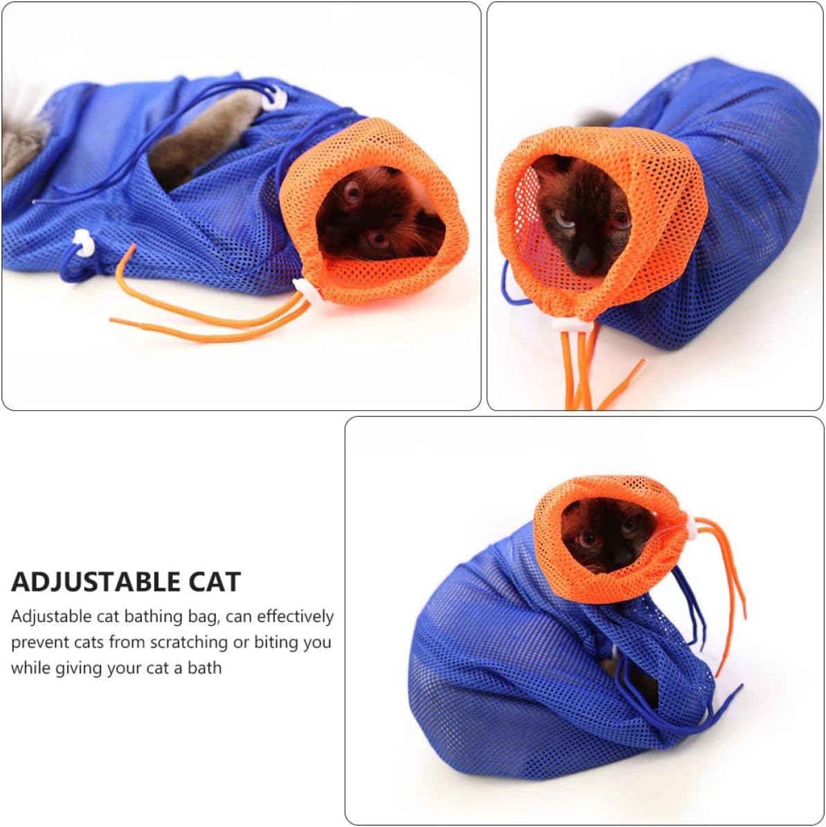 Package Include 3 x Cat Shower Bag Features - Size: 70.00X45.00X0.10cm/27.51X17.68X0.04inch Cat Grooming Bag. - Material: Polyester Pet Bathing Bag. - Suitable for your pet cat and little kitten. Avoid cat claws and teeth sratching and hurting you Cat Washing Shower Bag. - ColorBlue Cat Bath - Efficient bag for grooming, bathing, nail trimming, cleanings, injections, ear and eye treatments, examinations, and administration of medicine etc Cat Bath Bag. - Pull rope design make it easy control the cat and keep them calm Cat Bathing Bag. - Your kitten and puppy access in or out the cat bag easily Cat Washing Bag. - Breathable material is more sturdy to prevent tearing and biting and scratching Mesh Bag for Cats. Cat BagGoods DescriptionPet Bathing Bag Do you have a pet at home and are worried about being scratched and hurt by your cat or dog when it is bathing, cutting nails, picking ears or doing other things? Then this kind of bath bag is suitable for you.Cat Bath Bag It is comfortable for pet to wear and also easy to put on and off