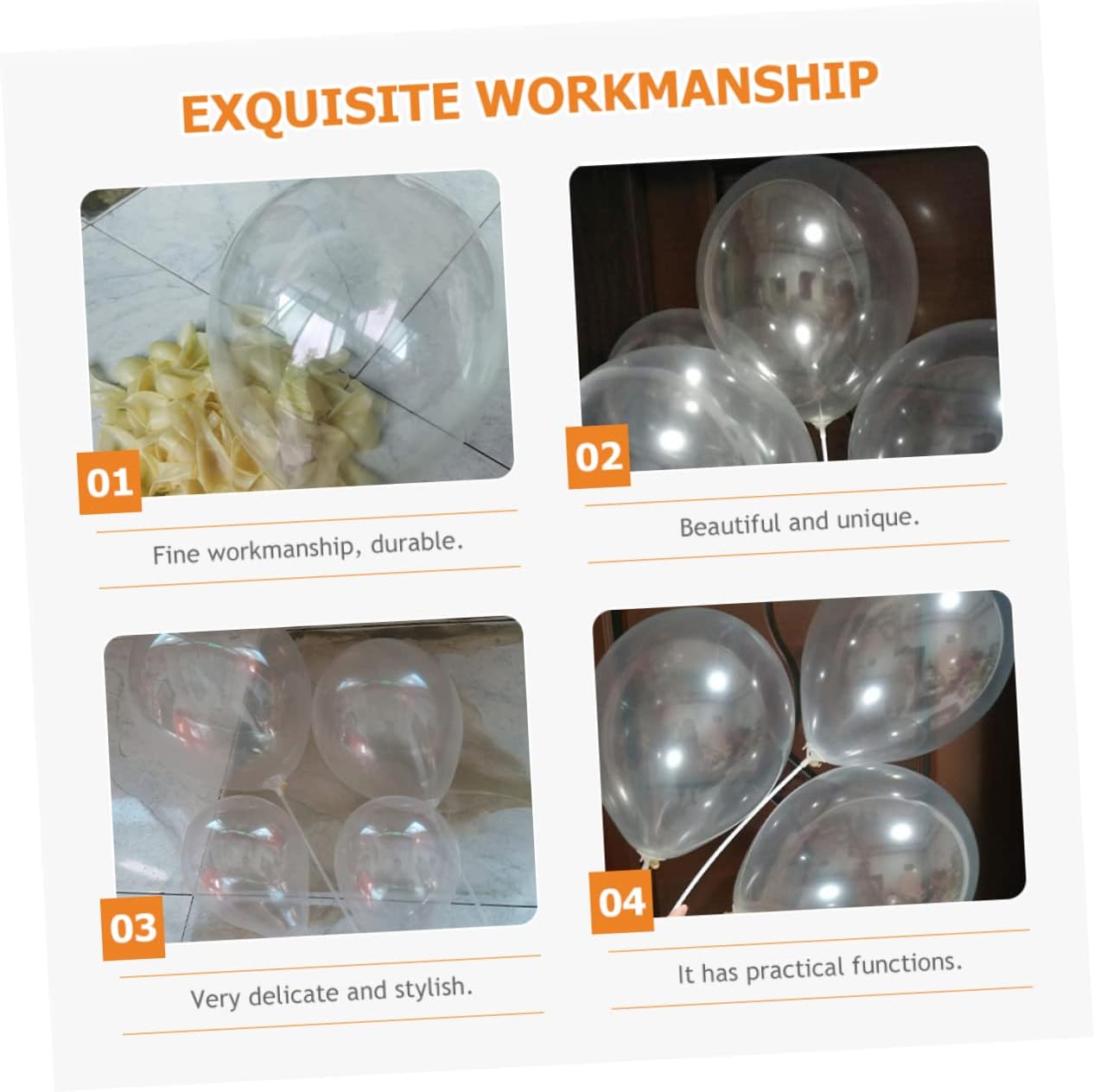 Package List 300 x 5inch Balloons 300 x 12inch Balloons Features -Color:As Shown wedding party balloon -Material:Latex party layout props -Size:15.00X15.00X0.10cm,30.00X30.00X0.10cm/5.89X5.89X0.04in,11.79X11.79X0 clear balloons. -Great party decorations, you can put these balloons on walls, ceilings, doors, tables, etc latex balloons. -Made of latex material, you don't need to worry about tearing or breaking when inflated shower balloons. -Suitable for indoor or outdoor decorations, enough quantity for your decoration needs party balloon decoration. -Suitable for birthday party, wedding party, festival or other party what you want! round party balloon -These transparent latex balloons make the party scene layout beautiful and unique bubble decorations.Goods Descriptionbirthday party balloon It has practical functions.balloons These transparent balloon are made of latex material.party decoration It can be applied to the background decoration and scene layout of various themed parties and celebrations. workmanship, safe and , can well meet your needs