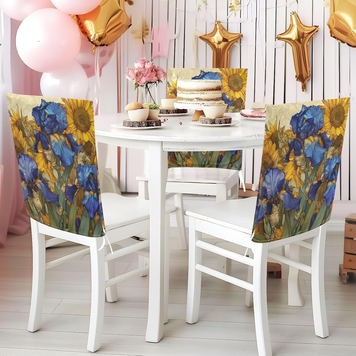 Chair Cover Material made of polyester,comfortable and soft to touch,reusable and suitable for long term use Features easy to install and remove, tie rope design at the bottom,machine washable Stylish Chair Decoration With beautiful pattern,it can be used for family party/ birthday party/wedding/ holiday party to add atmosphere, also can be used for chair decoration in living room, dorm, kitchen dining room,bedroom to bring protection to the chair while avoiding stains to dirty the chair back. Easy To Care Machine washable, Not washing with hot water, Not bleaching