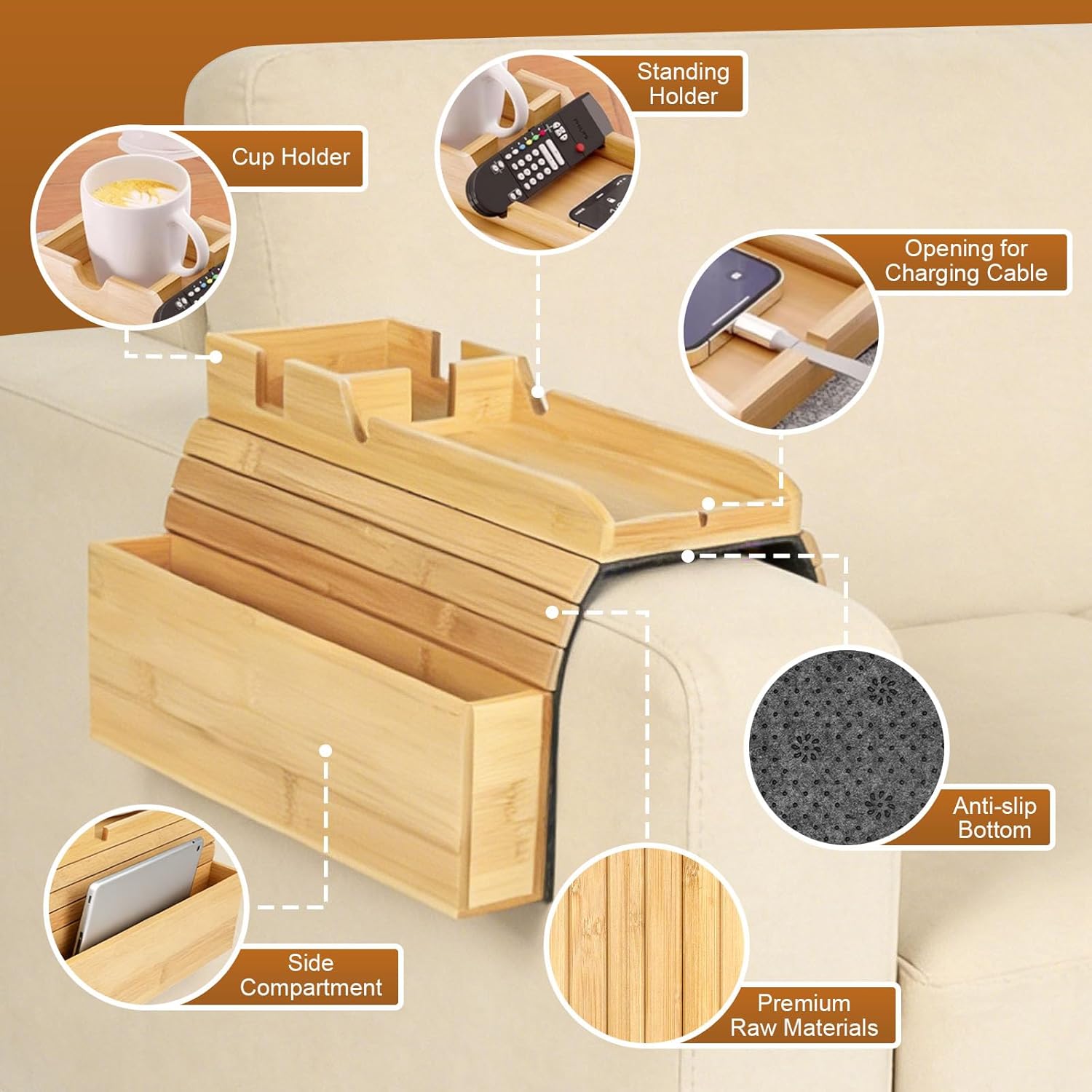 | Recommended Uses For Product | Couch Arm Tray, Drink Holder, Remote Control Holder, Snack Tray, Sofa Armrest Table |