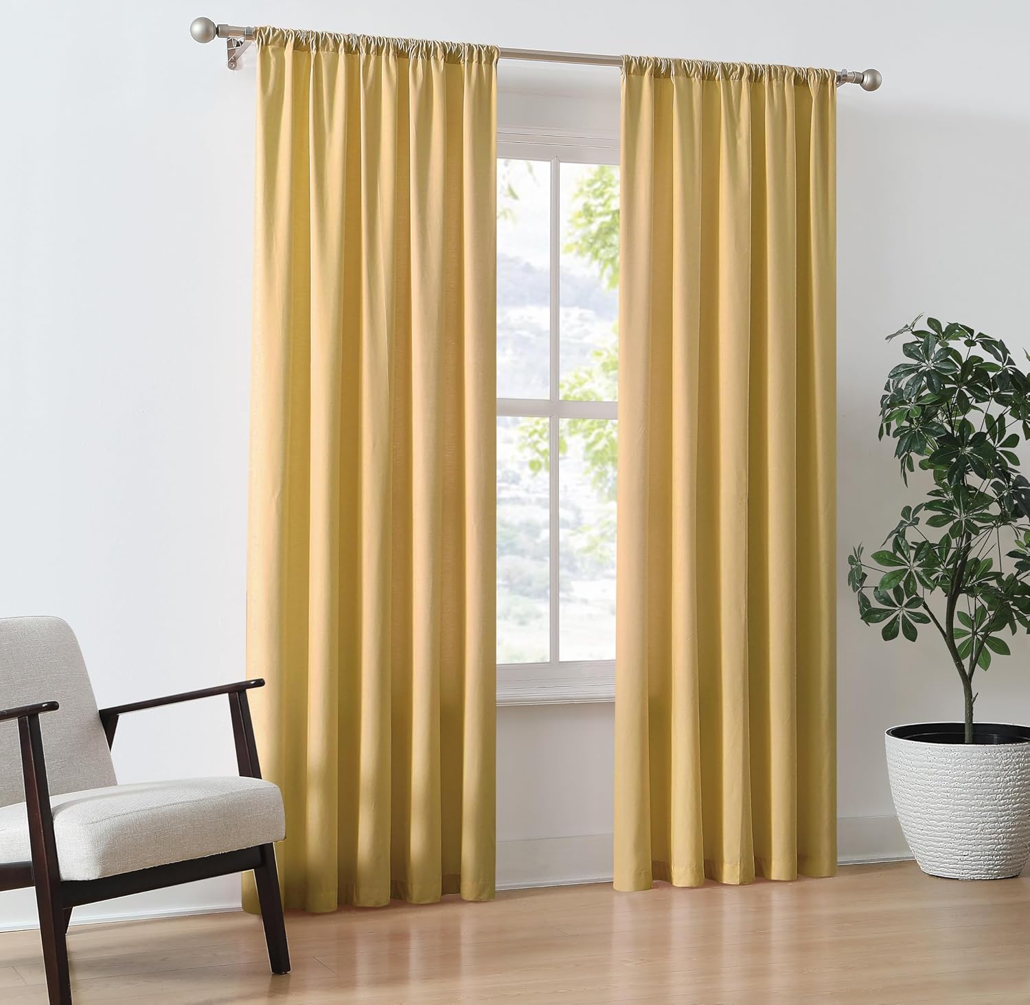 Brooklyn Loom Solid Cotton Percale Mustard Yellow 50x84 Window Curtain Pair, Solid Color Themed, Oeko-TEX Certified Confidence