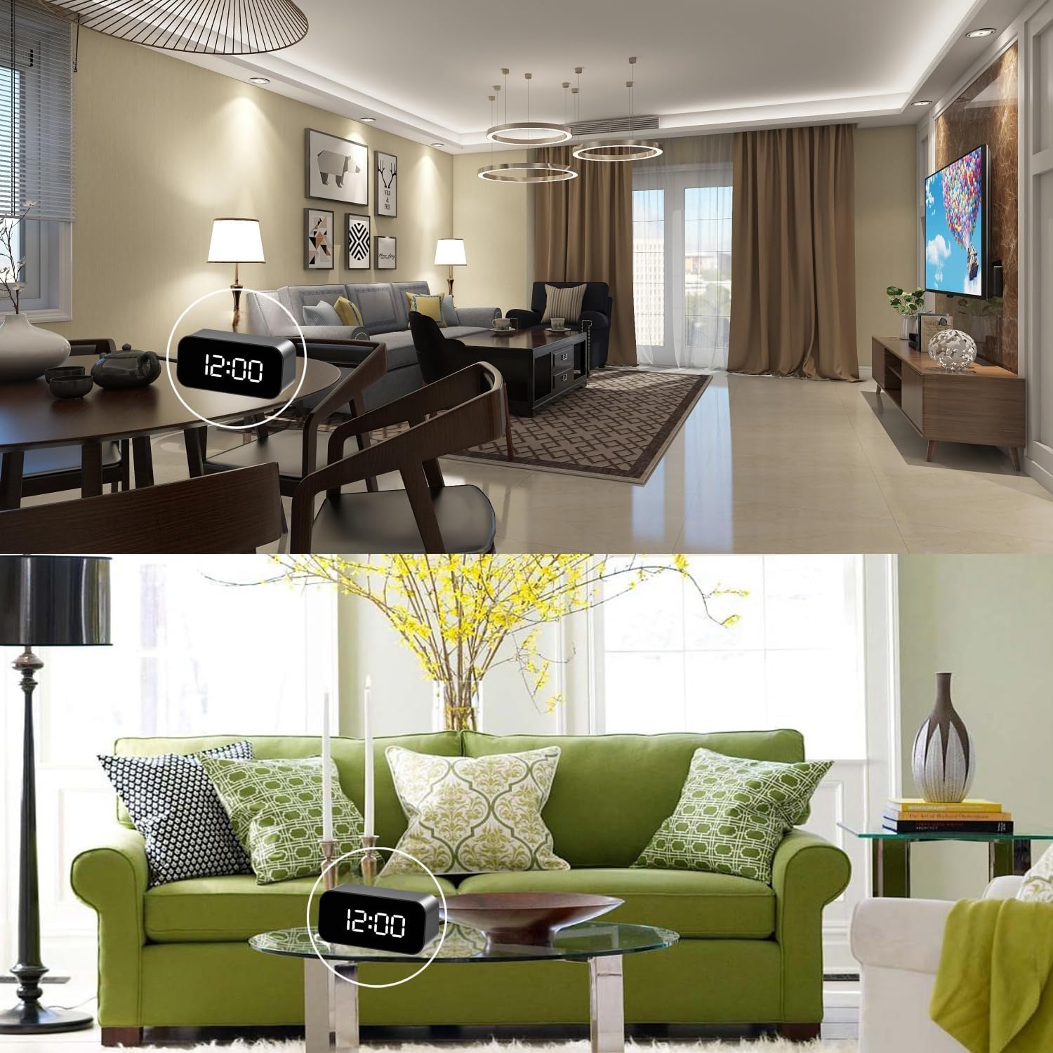 Mini Video Clock IP Camera,Miota 1080P HD Wi-Fi Wireless Clock Camera With Night Vision Motion Detection for Indoor Security, Nursery, Pet Monitor. Features: 1.Real Full HD 1080P 2.Small and stylish 3.Practical: a real digital alarm clock Camera: *WiFi IP camera: to be able to check the live video at anytime anywhere *APP : to make the remote control possible *Night vision: vivid and clear image even at night *Motion detection: it will send the alert to your phone when it’s set High resolution: HD1920*1080p *Remote control: use your phone to control device at remote distance Applications: To watch the kids and the old when you are out To keep an eye on your home or office To keep the evidence when something happens Parameters: Video encode:H.264 Wi-Fi: 802.11b/g/n(2.4G and 5G) Resolution: 1920*1080p Battery: 4500mAH Lens angle: 140 degree Power Supply: DV, 5V, 2A OS support: Android & iOS Color: Black Package Included: 1 x power adaptor 1 x USB cable 1 x User’s manual