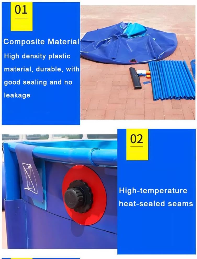 This versatile above-ground pool is perfect for leisure and aquaculture, combining fun with practicality. Made from high-density PVC canvas, it offers superior durability, ensuring longevity compared to standard pools. Available in multiple sizes, this pool accommodates 1-2 to 6-8 people, making it an excellent choice for family gatherings or small gatherings with friends. Installation is a breeze, and the pool can be easily dismantled for convenient storage when not in use, allowing you to maximize your outdoor space. Whether you want to cool off on a hot day or create a unique environment for fish, shrimp, or crab farming, this pool meets diverse needs. **Product Specifications:** - Name: Above Ground Pool - Material: Premium canvas with galvanized steel frame - Color: Blue - Sizes Available: - 1x0.6m (470L) - 1x0.8m (628L) - 1.2x0.6m (680L) - 1.2x0.8m (900L) - 1.2x1m (1100L) - 1.5x0.6m (1000L) - 1.5x0.8m (1400L) - 1.5x1m (1700L) - 1.5x1.2m (2100L) **Ideal for:** Backyards, gardens, homes, and various outdoor settings. **Package Includes:** - 1 x Above Ground Pool - 1 x Cover - 1 x Inlet and Outlet - 1 x Ball Valve Switch - 1 x Drainage Pipe - 1 x Material Belt - 1 x Repair Patch - 1 x Safety Net This above-ground pool is not just a place to swim; it’s a sustainable choice for outdoor enthusiasts seeking to enjoy both recreational activities and aquaculture. Experience the joy of summer with this durable and multifunctional pool that caters to your outdoor lifestyle.