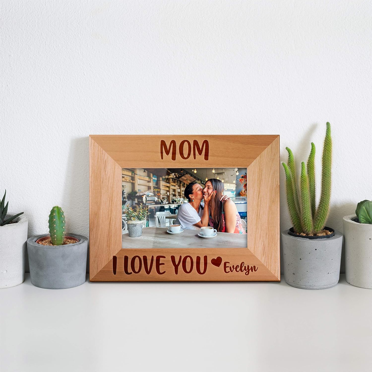God could not be everywhere, and therefore he made mothers. Mother’s Day is the special time of year when you get to celebrate your first best friend and the person you always turn to when you need advice. Mother’s Day is also a great time to show your love for all the other wonderful women in your life. If you’re looking for a way to show your mother, grandmothers, sisters, aunts, and friends how special you think they are, check our personalized picture frames.CUSTOMIZE NOW: Personalized alder wood laser engraved photo frame. Click ' Customize Now' to choose the size + orientation & put the customization information.OPTIONAL SIZES and ORIENTATION ON CHECKOUT : Available picture frame sizes - 6.5" x 8.5" (holds 4x6 photo) - 7.5" x 9.5" (holds 5x7 photo) +$5 | 11.5" x 13.5" (holds 8x10 photo) +$22. Also pick Horizontal or Vertical option. GREAT GIFT- Great gift idea for Mother's Day Gift, Birthday Gift. A gift from daughter or son to mom is always special. Now make it more special with your beautiful picture together in it ! Or maybe you need to show your women how wonderful mother she is with the personalized picture frame.SOMETHING SPECIAL - Pictures are last forever. If you are not telling your mom 'i love you' enough, what is the best reminder for her than a customized picture frame says I LOVE YOU!