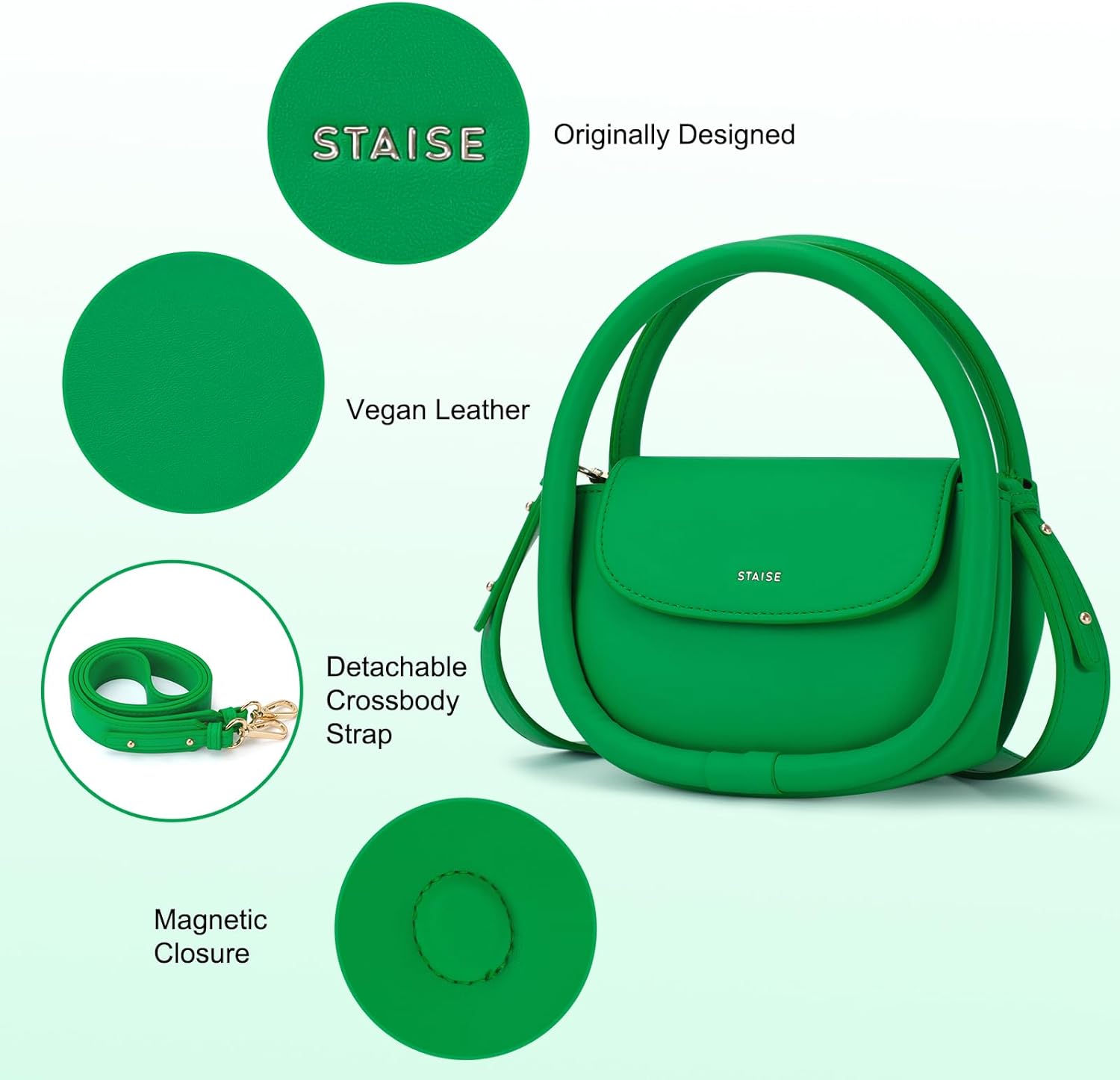 • ⭐Trendy and Versatile Designer Bag: Chic and structured, this mini top handle crossbody bag from Staise is versatile with multiple wear options. It's easy to make an instant impact with women's bags in look-at-me brights, from hot pink, green to orange. Prefer to keep things classic? Go for neutral hues such as midnight black, ivory white or beau blue.
