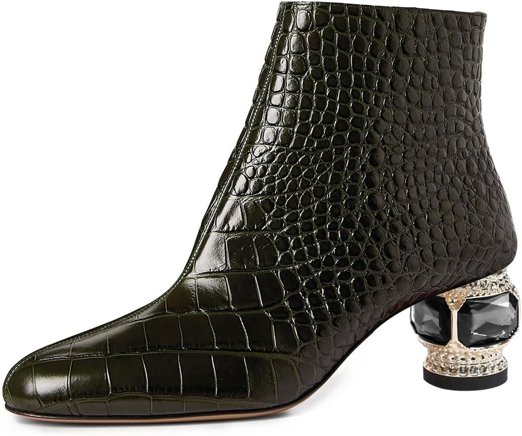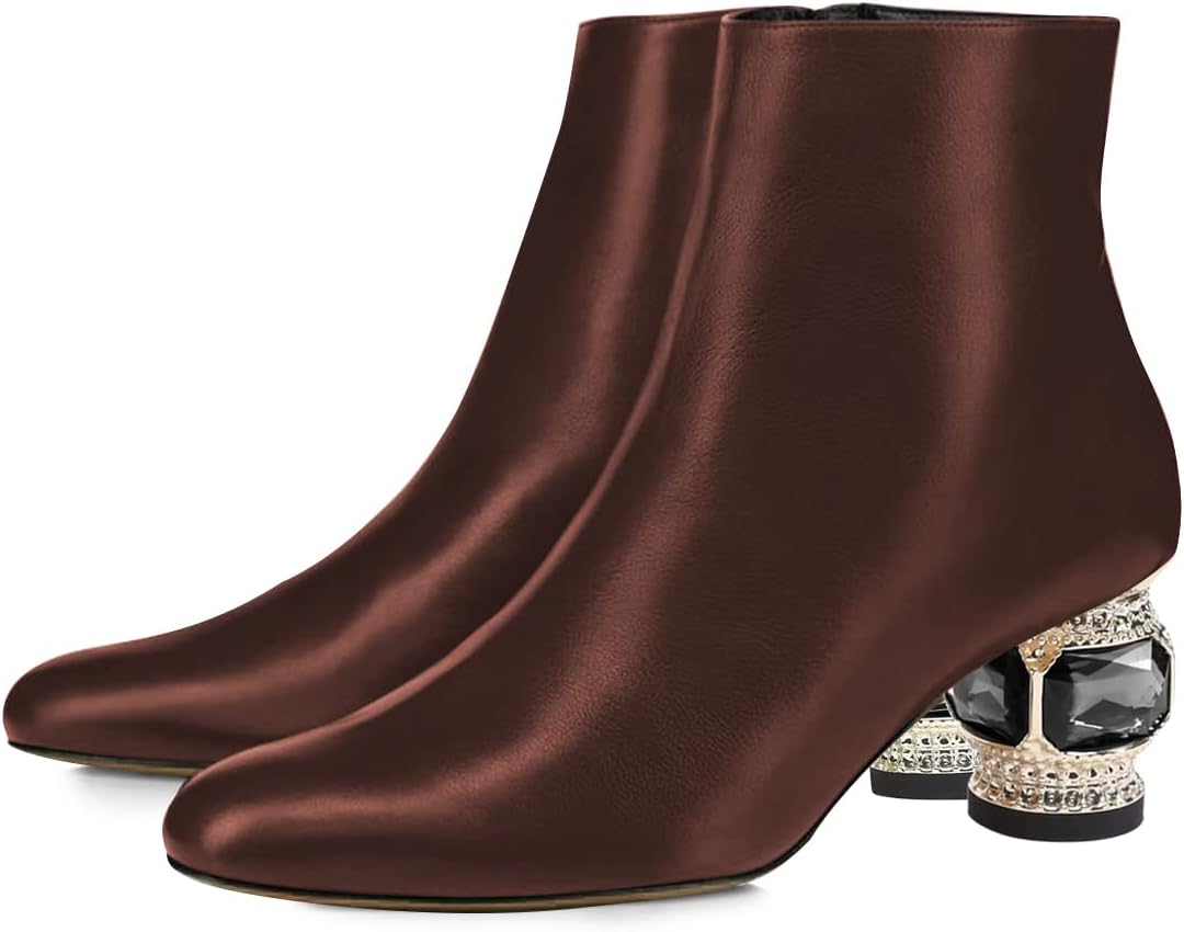 | Style Name | Classic Round Toe Crystal Low Heel Ankle Boots |