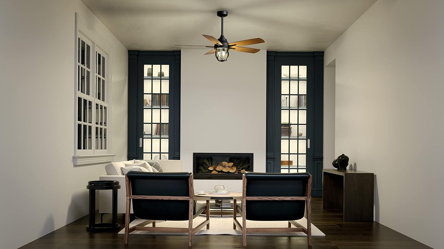 | Included Components | What's in the box? (5) 52 inch Plywood Fan blades, (1) 4.5inch downrod, (1) 153mm x 20mm AC Motor, (1) 65K Wall Control System-Full Function, (1) Mounting Kit, (1) Hanger System, (1) LED module with Etched Cased Opal Glass |