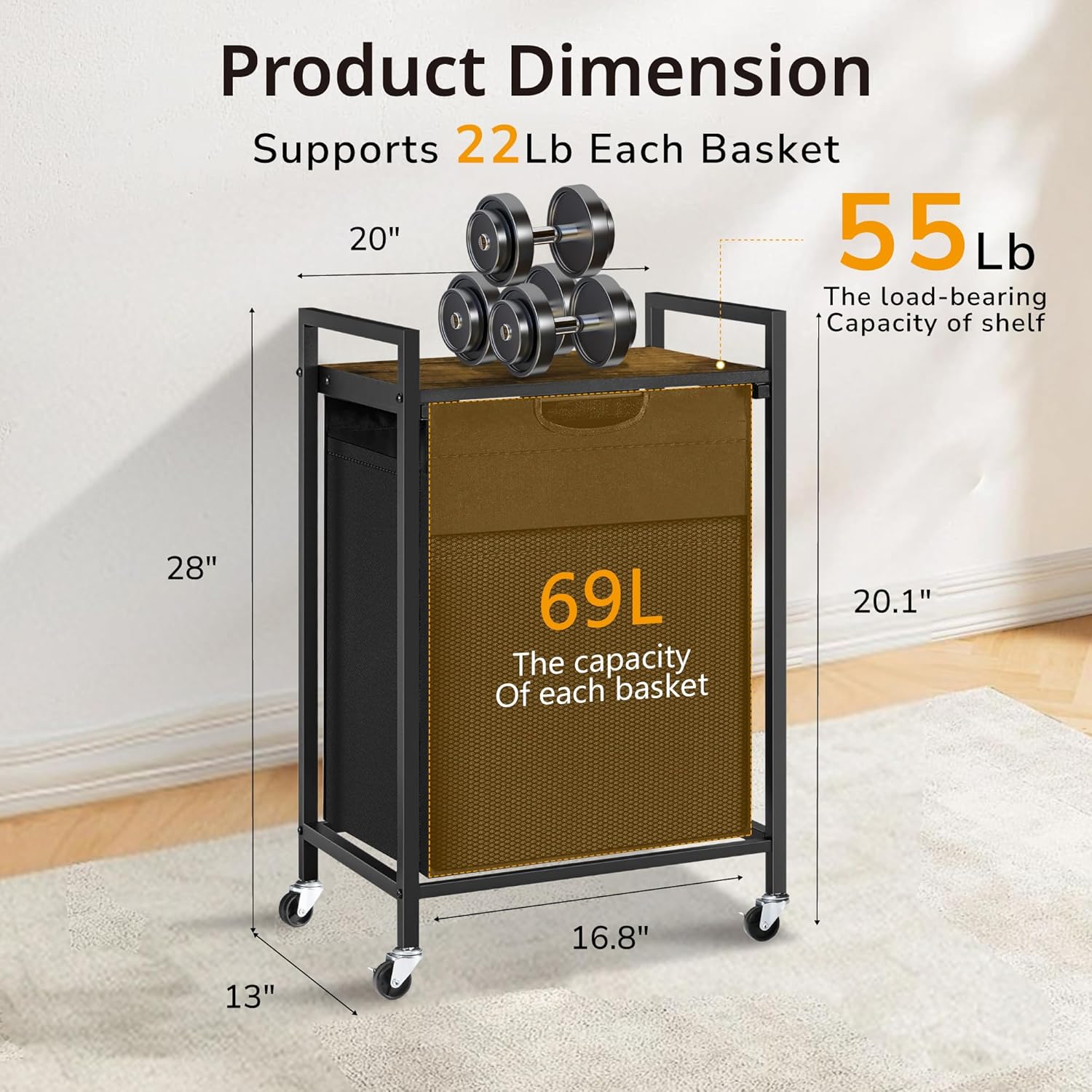 | Item Type Name | 1 x 18.3 Gallons, Total 69L, Cloth Laundry Sorter with a Top Shelf 20"x13" (Black and Rust) |