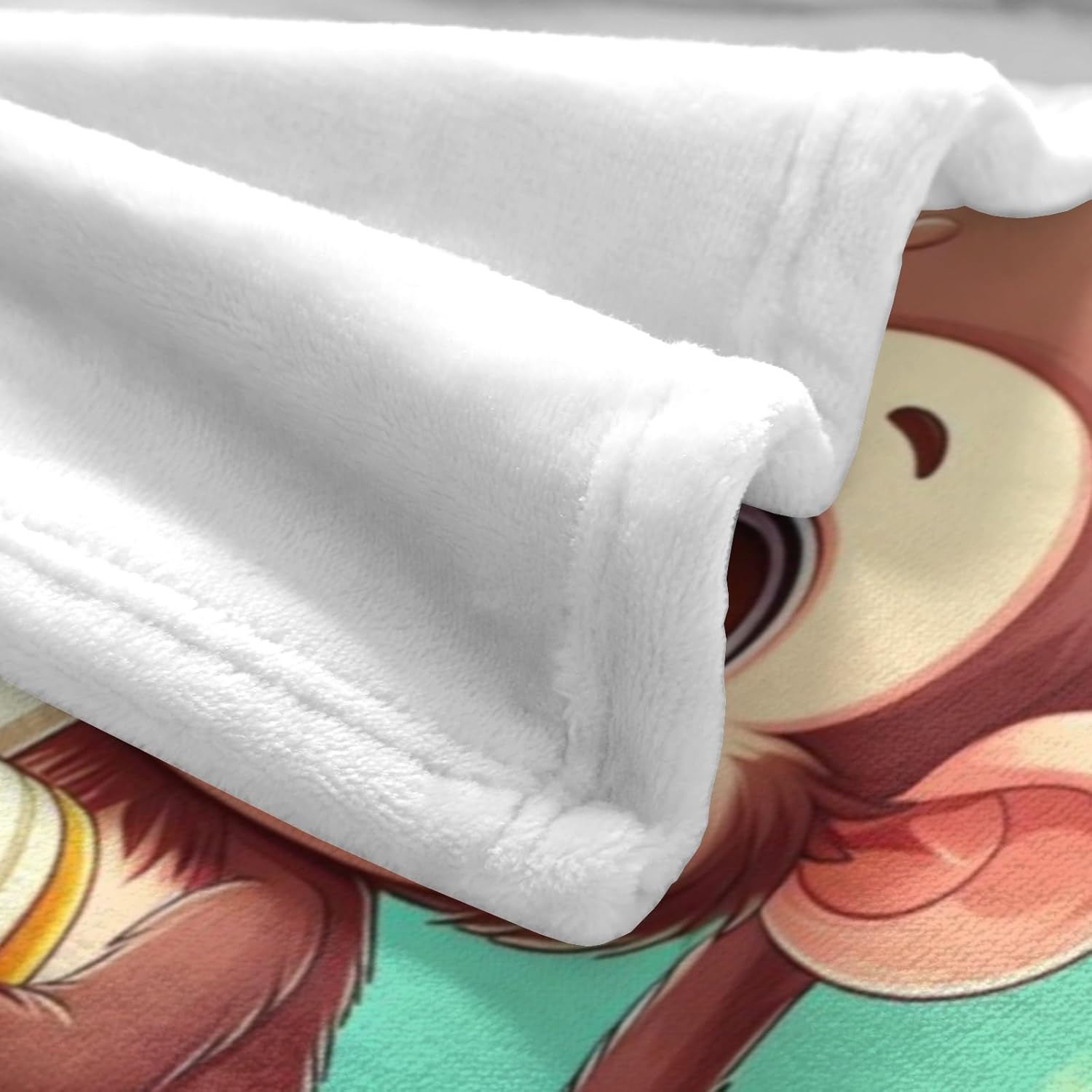 Monkey Blanket with Name, Personalized Throw Blanket for Couch Sofa Bed, Soft Warm Fuzzy Cozy, 40 x 50 Inches