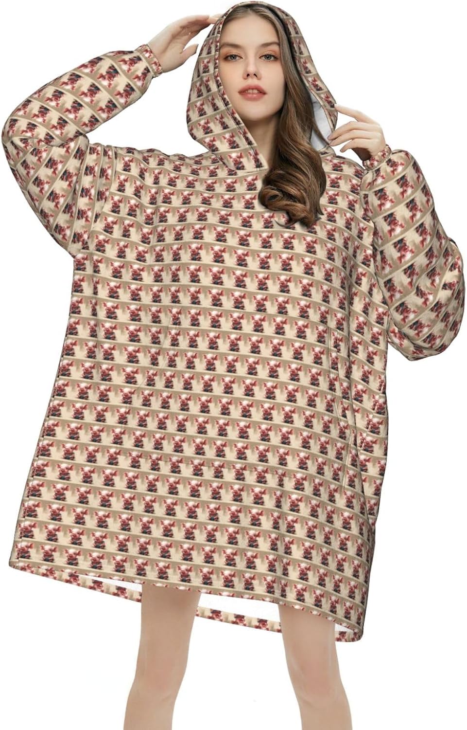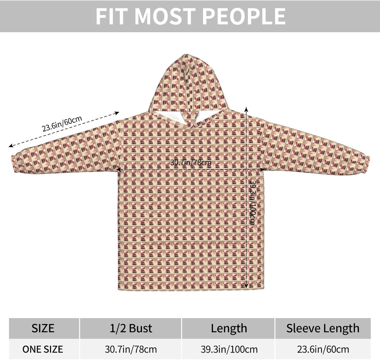 Experience Ultimate Comfort And Warmth With Our Cozy Blanket Hoodie, Designed To Keep You Snug And Stylish During The Cold Winter Months. Crafted From 320g And 280g Flannel, This Oversized Blanket Hoodie Is Incredibly Soft And Warm, Making It The Addition To Your Loungewear Collection.\r\nThe One-Size-Fits-All Design Ensures A Comfortable Fit For All Adults, With A 1/2 Bust Of 30.7in/78cm, Length Of 39.3in/100cm, And Sleeve Length Of 23.5in/60cm. The Full-Print Design Adds A Pop Of Color And Personality To Your Outfit, Making It A Fun And Stylish Choice For Any Occasion.\r\nThe Functional Kangaroo Pocket In The Front Is For Storing Your Essentials, Such As Your Phone, Snacks, Or A Hand Warmer, While Also Providing A Cozy Place To Keep Your Hands Warm. Whether You'Re Snuggling On The Couch, Watching A Movie, Or Enjoying A Lazy Day, This Blanket Hoodie Is Your Go-To For Relaxation And Comfort.\r\nFor Both Indoor And Outdoor Use, This Wearable Blanket Is For A Variety Of Settings, Including Home, Dorm Rooms, Camping, And Travel. It Makes A Thoughtful And Practical Gift For Friends, Family, And Loved Ones, Especially During The Holiday Season, Birthdays, Or Any Special Occasion.\r\nStay Warm And Cozy With Our Cozy Blanket Hoodie, And Enjoy The Blend Of Style, Comfort, And Functionality. Order Yours Today And Experience The Ultimate In Loungewear !
