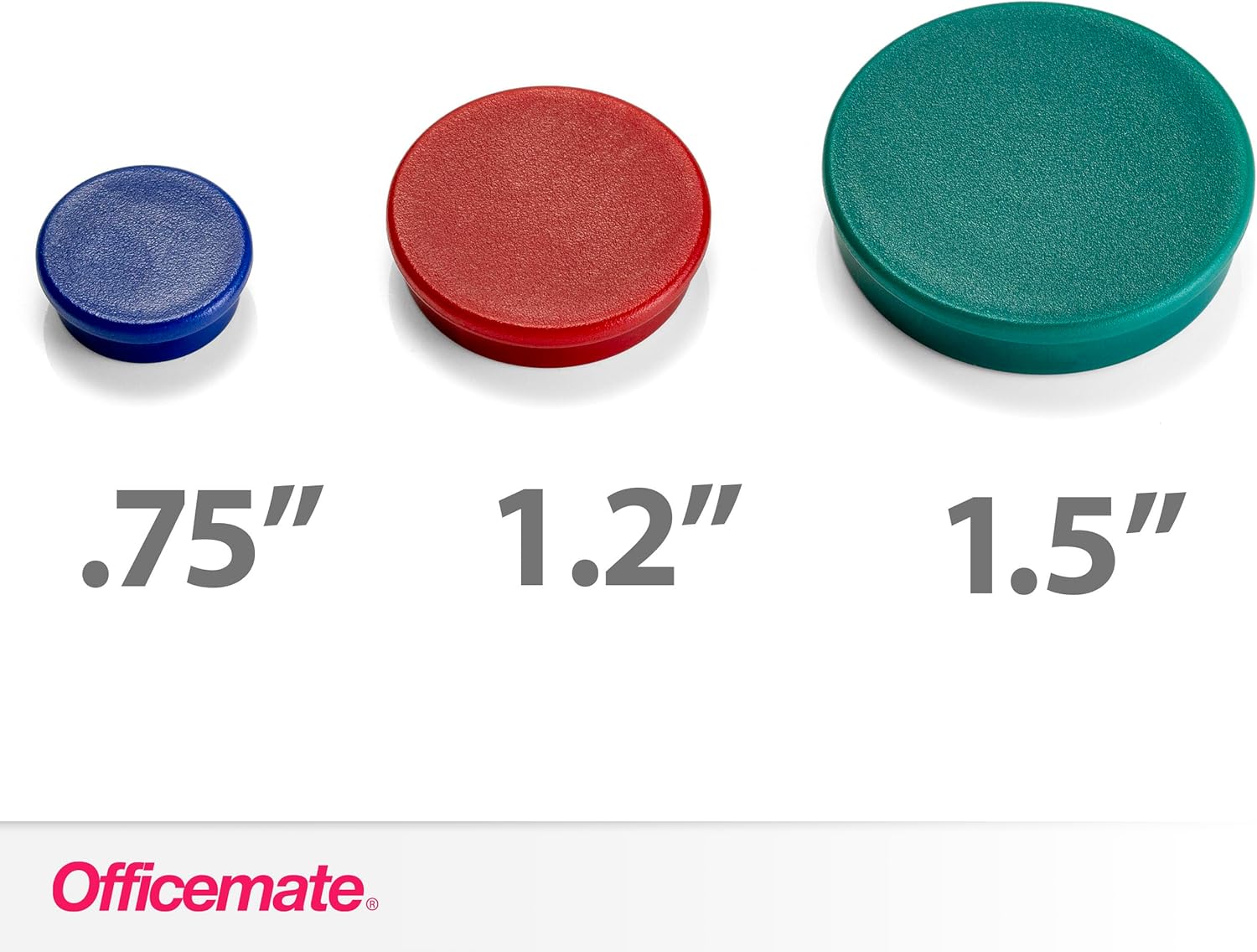 These handy magnets work well on file cabinets or metal presentation boards. Heavy Duty Magnets are three times as strong as standard magnets. Comes in a tub of assorted colors and sizes. Assorted tub of magnets contains 12 small (3/4' dia.), 12 medium (1 3/8' dia.) and six large (1 1/2' dia.) magnets.