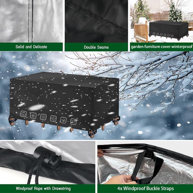 We are committed to creating higher quality furniture covers to protect your outdoor furnitures from various environmental elements. It will always protect your outside furnitures clean and dry, thus extending their lifespan.Type: Furniture Covers/Patio Table Cover/Outdoor Table CoverShape: Cuboid / CubeMaterial: 600D waterproof Oxford clothColour: black / silverSize: Optional(Length*Width*Height)/Support customization① The rectangle patio table covers is made of fade-resistant oxford fabric, and can protect your furniture in bad weather.② All Season Protection: The patio rectangle furniture cover can protect your furniture from rain, dust, sun , snow.③ Buckled Straps and Drawstring, There are 2 buckled on each side under the patio furniture covers, which are fixed to the corner of the table. The 360° drawstring can make your table fit the cover, which can prevent strong wind,rain,snow.④ Strong compatibility, applicable to most furniture, can be used indoors or outdoors.We pay attention to every detail of products and ensure you to receive an portable and exquisite item.outdoor furniture cover,patio set covers waterproof outdoor,waterproof patio furniture cover,patio table cover outdoor furniture,patio table cover,patio furniture set covers,patio furniture cover waterproof,patio covers for outdoor furniture waterproof,outdoor table cover waterproof,outdoor furniture covers for table and chairs,outdoor cover,waterproof patio furniture covers,patio furniture covers