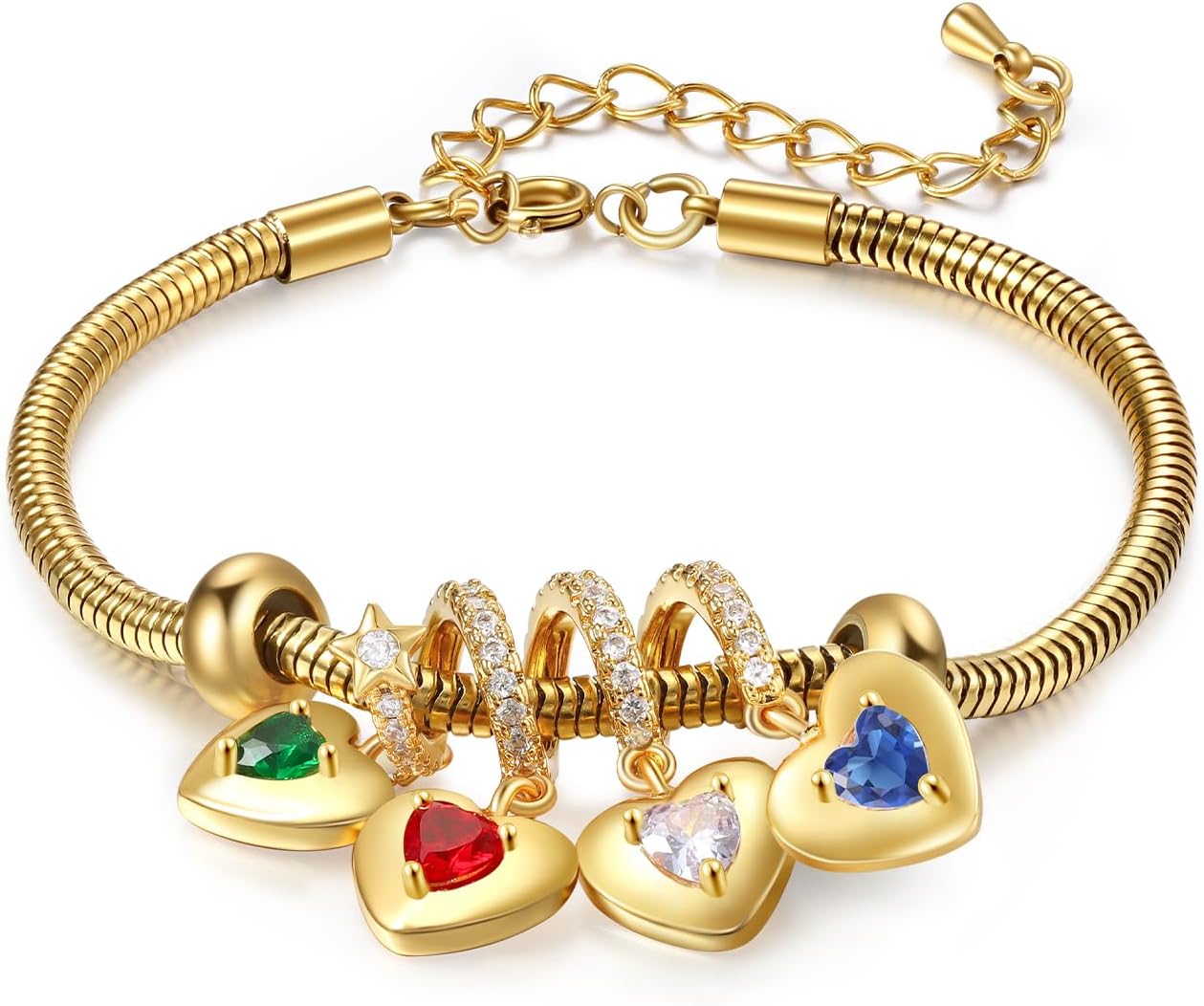 Express your love and connection with our Personalized Birthstone Bracelets for Women, a custom treasure designed to capture your most meaningful moments. Handcrafted with care, this bracelet lets you choose 2-4 colorful birthstones and engrave names to create a unique keepsake that symbolizes the relationships closest to your heart. Made from sturdy copper and stainless steel, this bracelet is designed for everyday wear, with an adjustable 17+5cm chain for a perfect fit.Encased in a luxurious gift-ready box, this customized birthstone bracelet is an excellent choice for Mother’s Day, Valentine’s Day, Christmas, anniversaries, birthdays, and other special occasions. Whether you're gifting this to your mother, daughter, sister, wife, or best friend, its thoughtful design and sentimental value make it truly unforgettable. Perfect for those seeking personalized bracelets for women, mother-daughter bracelets, or unique custom engraved jewelry to celebrate meaningful relationships.Capture memories and create a treasured piece of jewelry that tells your story. Order your custom birthstone bracelet today and make someone's day extra special!