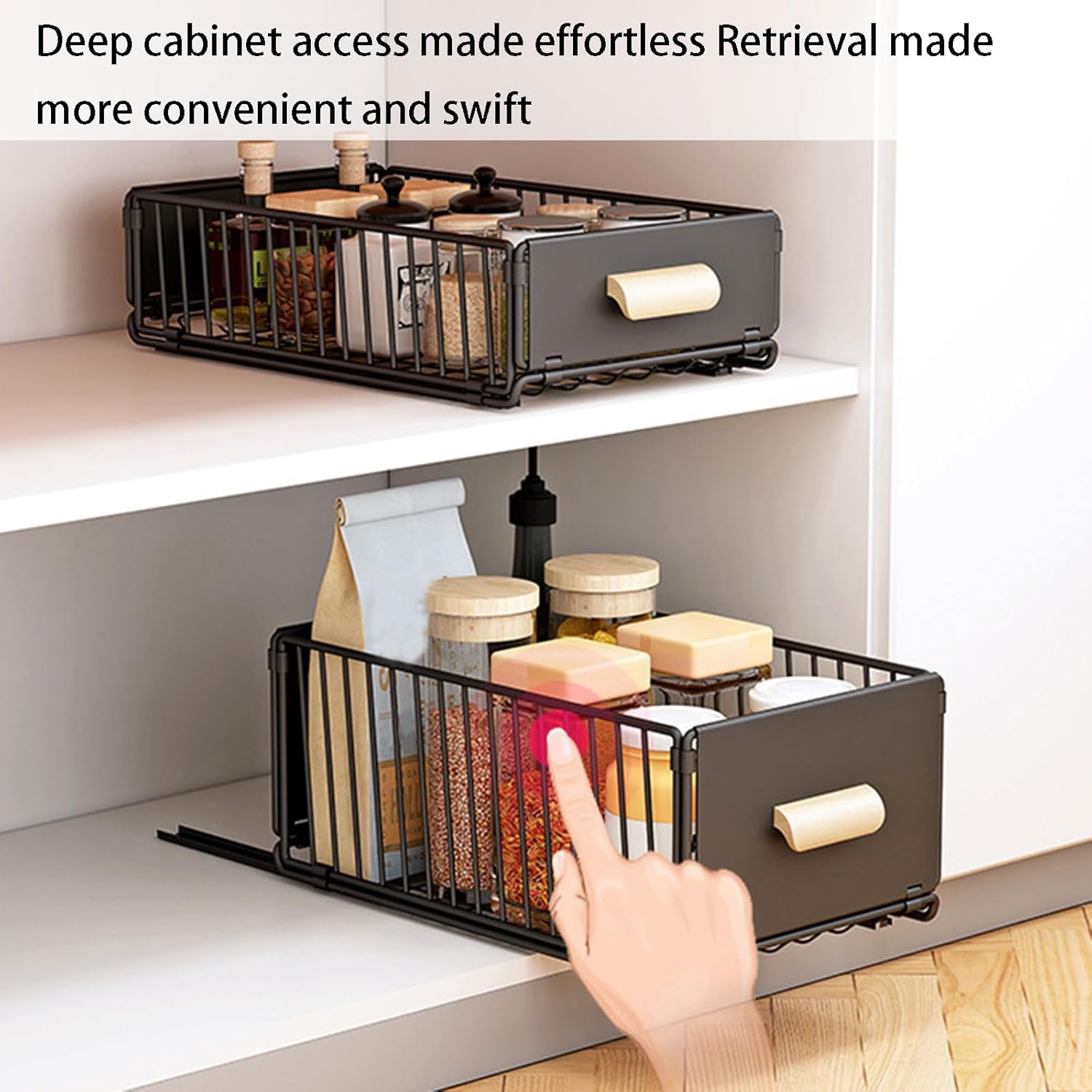 Transform your kitchen and bathroom organization with our premium pull-out cabinet organizer. Say farewell to clutter and the discomfort of reaching into deep cabinets. Discover the convenience of our innovative storage solution designed to enhance your living space. **Versatile Pull-Out Cabinet Organizer:** Made from high-quality carbon steel, this robust and rust-resistant drawer optimizes your kitchen cabinet space with its easy slide-out feature, making it perfect for maximizing storage in tight areas. Enjoy the functionality of a well-organized kitchen or bathroom without sacrificing style. **Effortless Installation:** Thanks to our advanced peel-and-stick technology, installation is quick and simple with no measuring or drilling needed. Just peel the strong nano film and stick it to your shelf for immediate access to your essentials, ensuring a hassle-free organization experience. **Smooth and Silent Operation:** Our pull-out drawer is equipped with a specially engineered damping guide rail that guarantees quiet and effortless sliding. Built to endure over 100,000 open-and-close cycles, this drawer provides reliable access to your items with full extension, ensuring that everything is within reach. **Perfect for Every Home:** This pull-out organizer is ideal for anyone looking to streamline their home. Easily store and access pots, pans, lids, baking sheets, spices, and small appliances in your kitchen, or keep your bathroom essentials neatly arranged. Enhance your pantry, cupboard, and bathroom storage solutions with this practical addition. **Size Consideration:** Before making your purchase, please measure your cabinet dimensions. Ensure that your cabinet space is approximately 3-5 centimeters larger than the dimensions of the pull-out organizer as shown in the images. Verifying these measurements will help confirm a perfect fit.