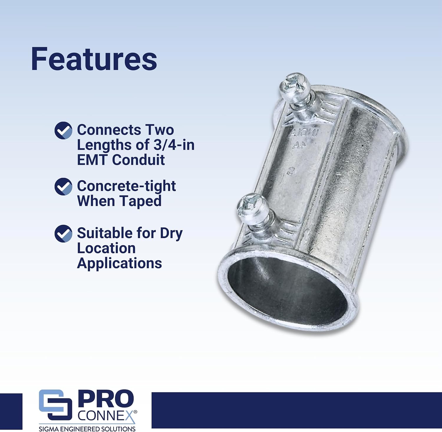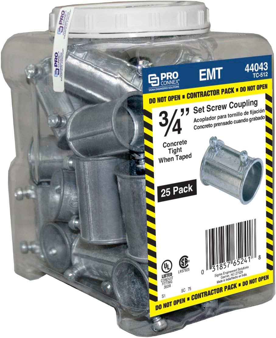 | Included Components | Sigma Electric ProConnex TC-512 EMT Set Screw Coupling 3/4-Inch, 25-Pack |
