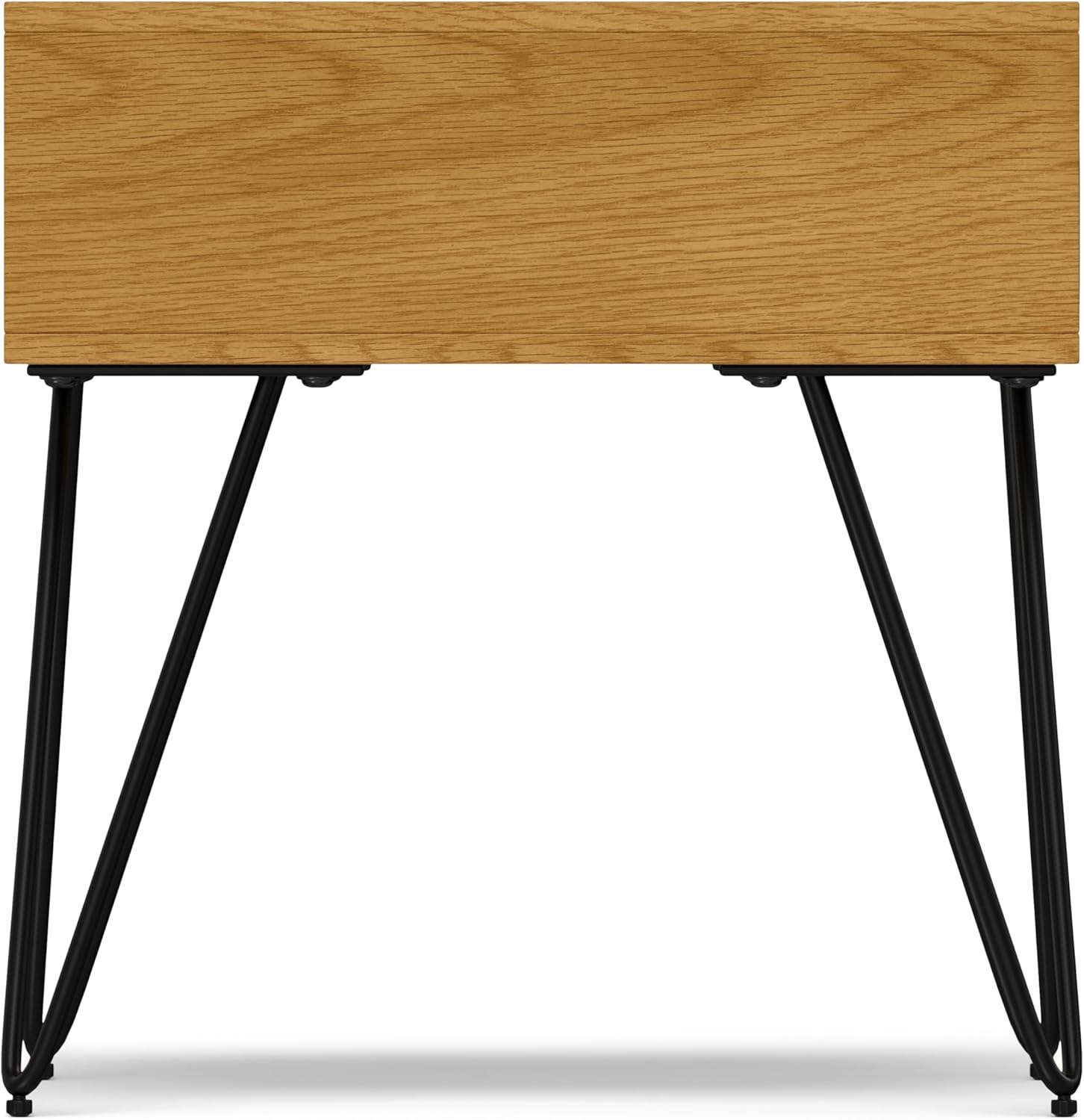 Whether you need a place for your favorite book, small lamp, or picture frame, the Hunter End Table is a great choice that will accentuate your living room with an on-trend look. Its metal hairpin legs and solid wood top combine to create a perfect example of Modern Industrial style. An open compartment provides convenient, additional storage space.