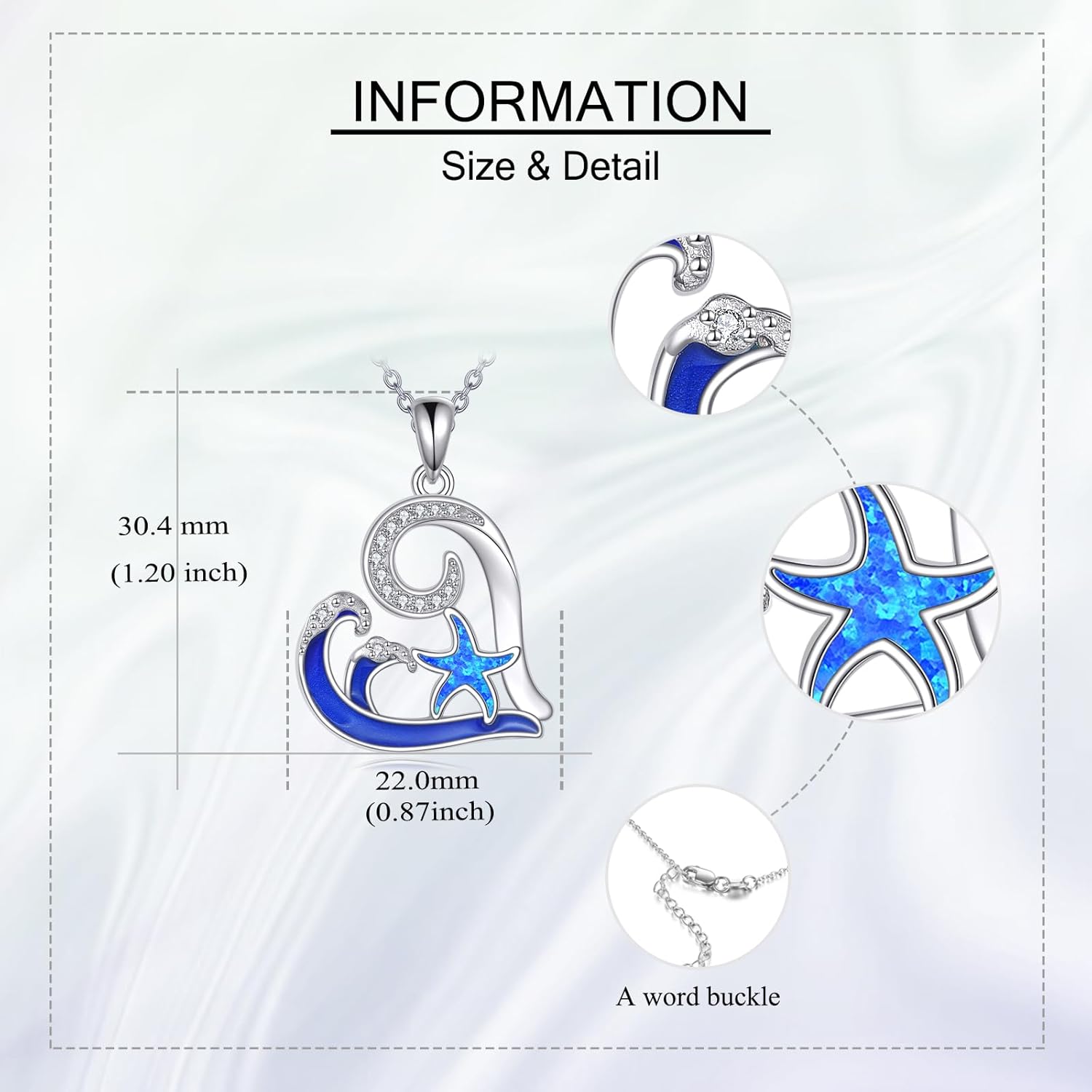 AXOMY Starfish Necklace 925 Sterling Silver Wave Pendant Blue Opal Starfish Ocean Necklace Jewelry Beach Themed Gifts for Women