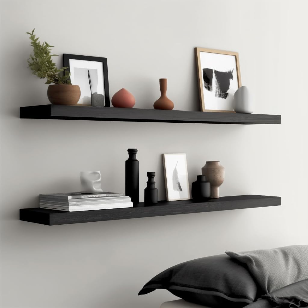🌲BEAUTIFUL WOOD GRAIN FLOATING SHELVESStereoscopic wood grain, cute look, mixing with classic/rustic and funky.Coordinates perfectly with your décor, you will receive tons of compliments on it!🌲HIGH QUALITY STURDY FLOATING SHELVES Handpicked solid wood materials, durable hardware, well made and 100% product inspection.Sturdy enough for holding a surprising amount of weight!PACKAGE:floating shelf × 4 - 24" x 6" x 1"Brackets × 8 anchor × 16 (6 mm φ × 42 mm L) + spare anchor (6 mm φ × 43 mm L)KEY WORDS:floating shelves, floating shelves wood, floating shelves bathroom, floating shelves wall mountedwood shelves, wooden shelves for wall, wooden shelves wall mounted, wood shelves for kitchen wall shelf organizer, wall shelf set, wall shelf storage, floating shelf walnut, floating shelves woodfloating shelves for wall, floating shelf organizer, floating shelf bathroom, wood shelves bathroomDISCLAIMER:We made it by hand. Each hanging shelf is unique, it comes slightly different in color, grain, texture.