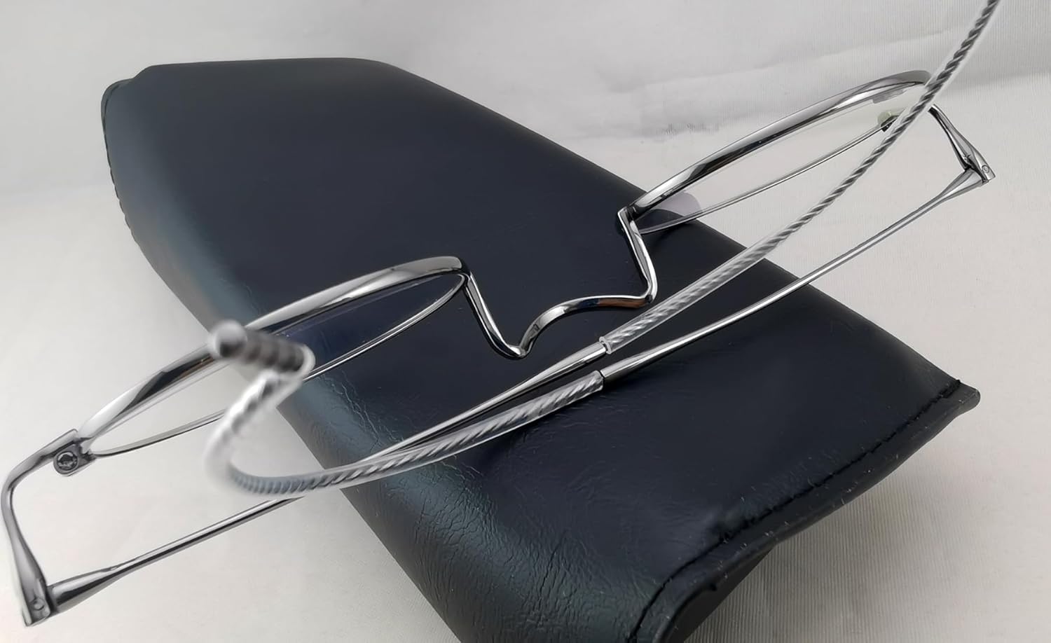 Pure Titanium material Eyeglasses. Real feather light : only 8.70 grams weight. Curly cable temples, truly vintage style. No Nose Pads design. Size: Lens width 48-nose bridge 21-temple 145 mm .